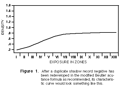 Before you can start printing, you must bleach the duplicate shadow record negative, then partially redevelop it using the modified Beutler formula mentioned previously. The resulting characteristic curve resembles Figure 1.